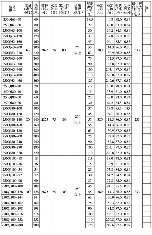 QJ(R) 型號特征:井用潛水電泵(熱水)